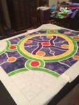 Now the quilt isn’t big enough. Have to add another border. Bigger border. Now have to miter that so it matched the smaller already mitered smaller border.
